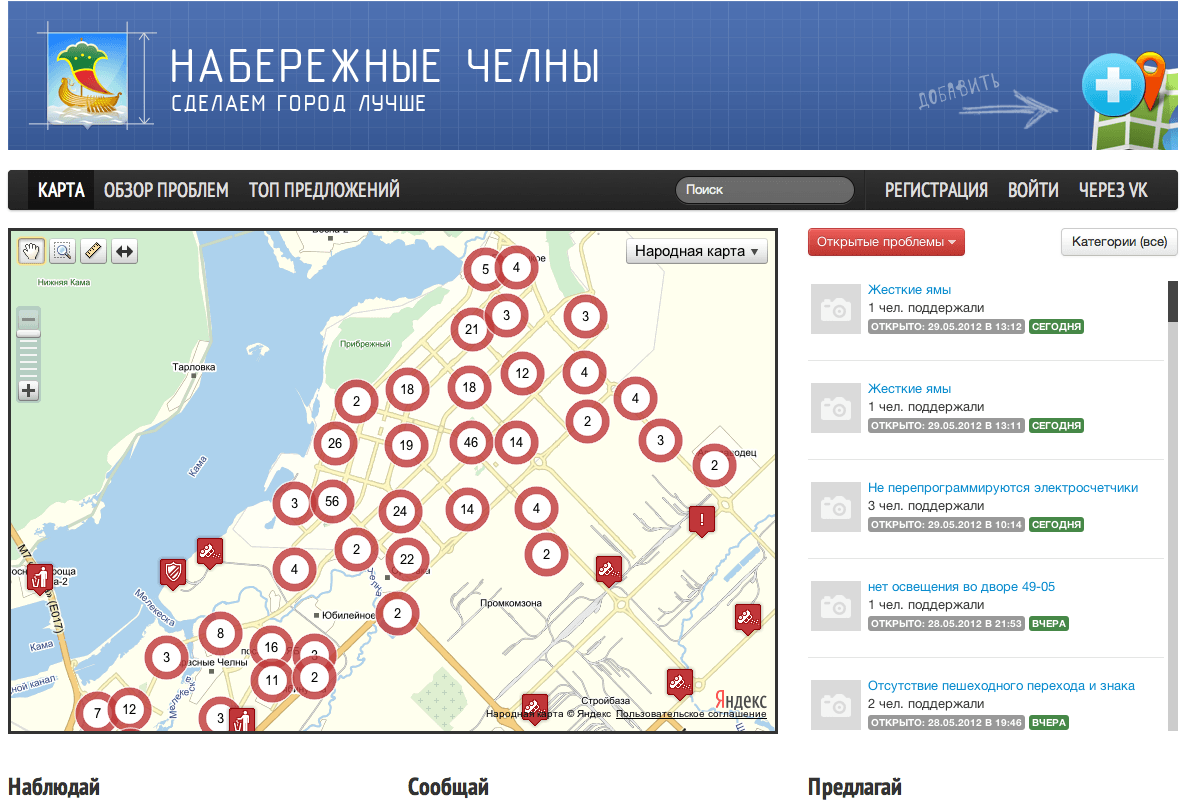 На сайте представлен разнообразный спектр проблем, с которым сталкиваются жители города: бездомные собаки; елки, мешающие обзору на дороге; сломанные весы в женской консультации и многое другое. На сайте происходит активное обсуждение проблем (можно не только добавить, но также и прокомментировать предыдущие записи и присоединиться к заявке). Сайт используется весьма активно: с конца марта появилось 1455 новых пользователей, было поддержано 1059 проблем. На текущий момент 363 проблемы, обозначенные пользователями, закрыты.