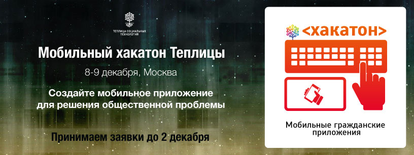 Мобильный хакатон Теплицы социальных технологий – это двухдневное мероприятие по разработке мобильных приложений для решения важных общественных задач, которое пройдет 8-9 декабря в Москве.