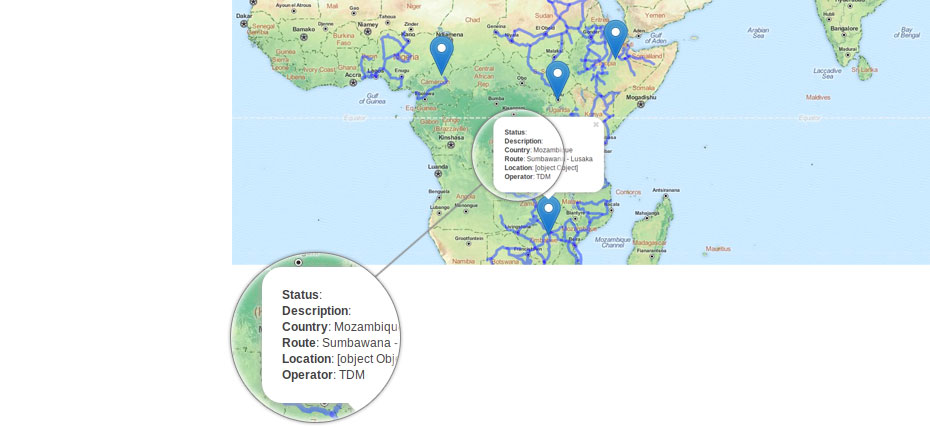 CKAN имеет геопространственные инструменты, включающие просмотр данных и поиск. Если данные загружены с географической информацией, CKAN может наносить их на интерактивную карту. Скриншот показывает карту с данными, где маркерами показаны точки данных и информация появляется, когда точка выбрана. Так же CKAN понимает месторасположение, связанное с данными, и предлагает на основании этого поиск. Пользователи, ищущие данные, могут фильтровать результаты по географическому положению, указывая ограничения для интересующей их области. Для того, чтобы ваши данные могли быть легко интегрированы с другими системами, CKAN включает в себя инструменты по импортированию геоданных в различные форматы.