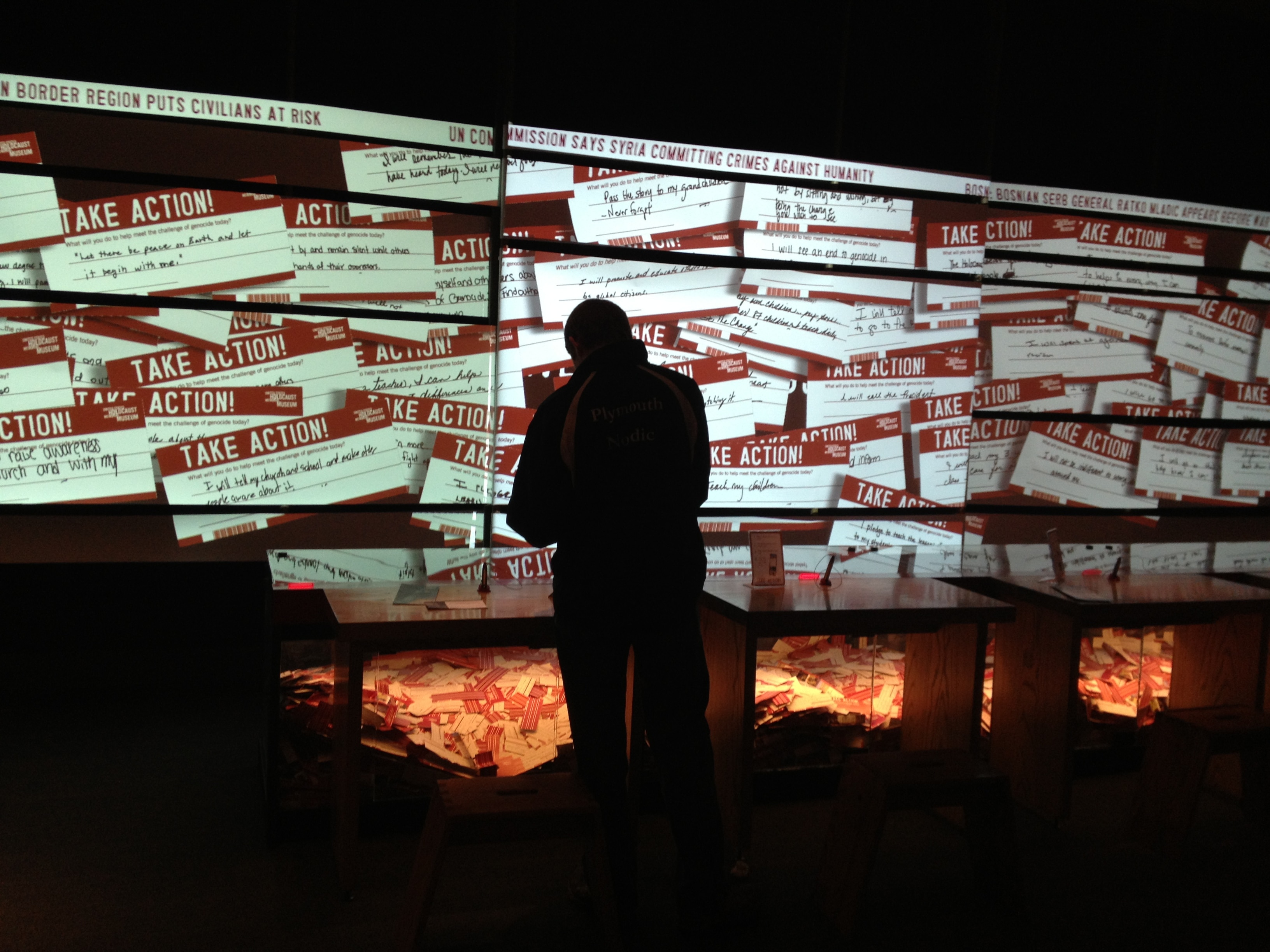 Нередко на выходе из музея можно встретить книгу отзывов и предложений, где люди оставляют свои впечатления и пожелания… но кто и когда делал эти впечатления ядром места, чем-то, что действительно его наполняет и достойно публикации, обсуждения, цитирования? В музее Холокоста в Вашингтоне все именно так – вас погружают в информационный поток, предоставляя возможность двигаться в собственном направлении и оставлять свои мысли и идеи в онлайн-формате, на стенах или открытках, посылая их по обычной почте.