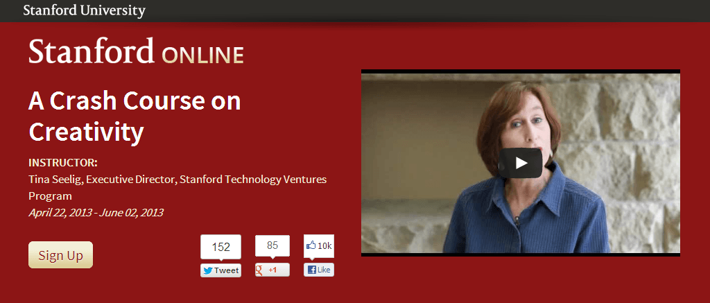Этот англоязычный онлайн-курс создан для тех, кто хочет знать, какие факторы способствуют креативности индивидов, групп и организаций. В рамках курса будут рассмотрены инструменты, которые помогают создавать новые идеи. Автор и преподаватель курса – Тина Силиг (Tina Seelig), исполнительный директор стенфордской школы рискового предпринимательства в сфере технологий (Stanford Technology Ventures Program).