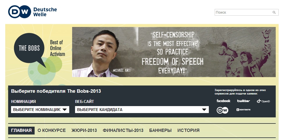 Совместно с организацией “Репортеры без границ” Deutsche Welle награждает автора блога, внесшего значимый вклад в поддержку свободы слова.