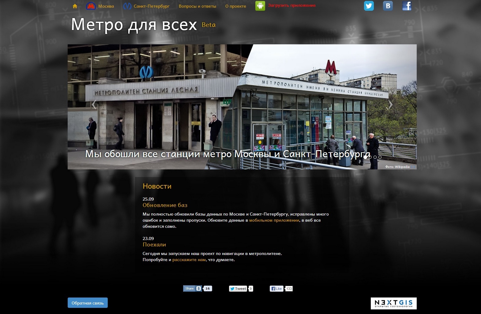 В сборе данных принимали участие сотрудники и стажеры NextGIS они лично обошли все станции московского и питерского метрополитена, зарисовали схемы вручную, рулеткой и уровнем измерили все объекты инфраструктуры. В качестве источника информации о выходах использовался Портал Открытых Данных г. Москвы, координаты уточнялись на OpenStreetMap.