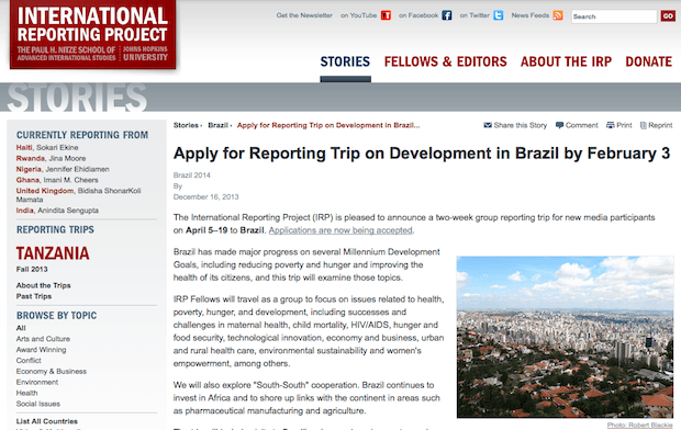 Начался прием заявок на участие в групповой репортерской поездке в Бразилию, которая пройдет с 5 по 19 апреля 2014 года.