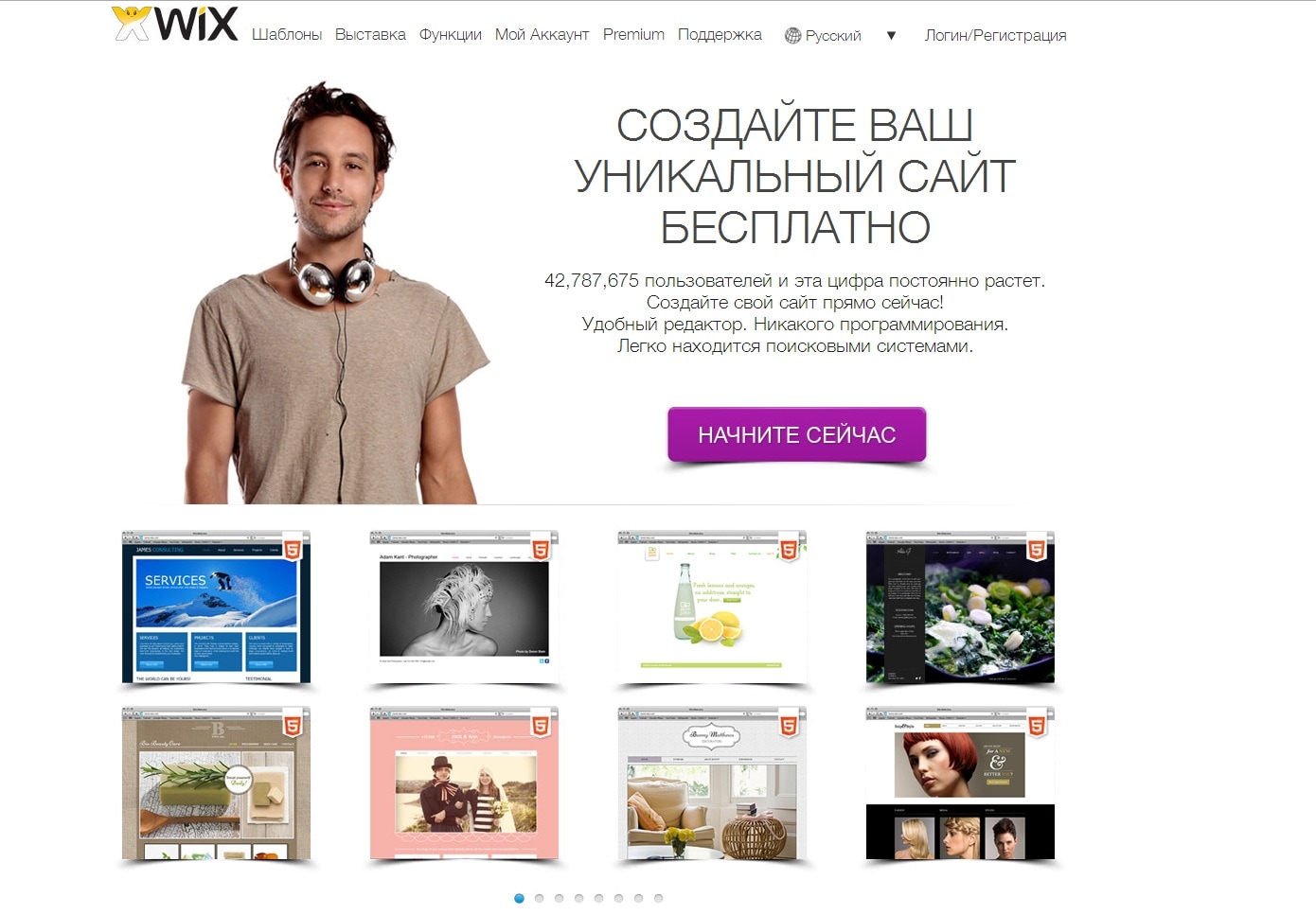 Если вам надо создать сайт-визитку, несложный сайт конференции или представить свой специальный проект, вам подойдет сервис Wix.com. Сервис представляет собой конструктор, где вы можете размещать различные элементы сайта, просто перетаскивая их на нужное вам место.