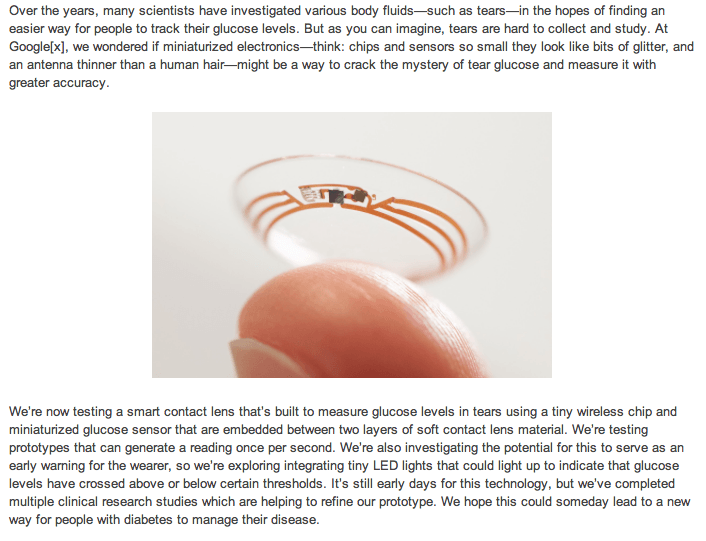 Практически все диабетики вынуждены вести каждодневный контроль за уровнем глюкозы в крови, брать регулярные пробы, что не всегда бывает удобно. Google разработал новую, более совершенную технологию, которая позволит людям управлять своей болезнью, не производя никаких специальных действий.