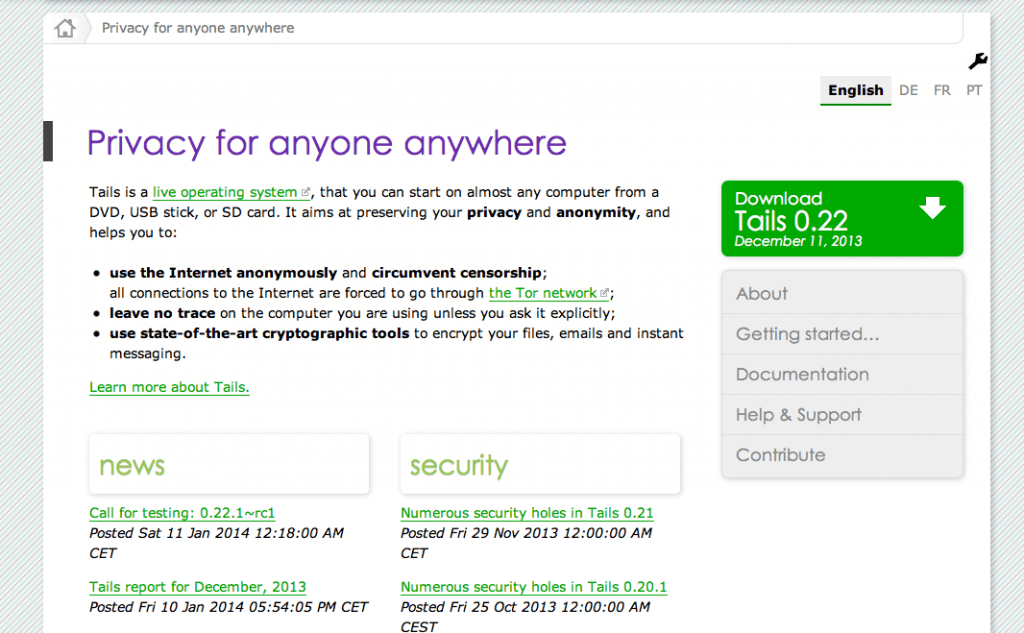«Tails» представляет собой разновидность операционной системы, которую пользователь может запустить с помощью USD, SD карты или DVD диска (Live USB). Программа «Tails» позволяет: