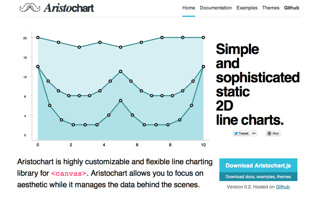 Aristochart позволяет строить двухмерные линейные статичные графики. Программа предполагает набор возможностей по дизайнерскому оформлению, изменению меток, других элементов графика и его адаптации.