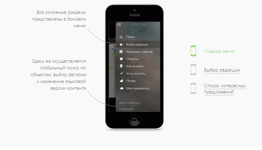 На каждый объект приложение дает геоданные (где находится), фотографии, а также краткое описание: историческая справка, что объект или маршрут представляет собой сейчас и какие события там ожидаются («Календарь событий»).