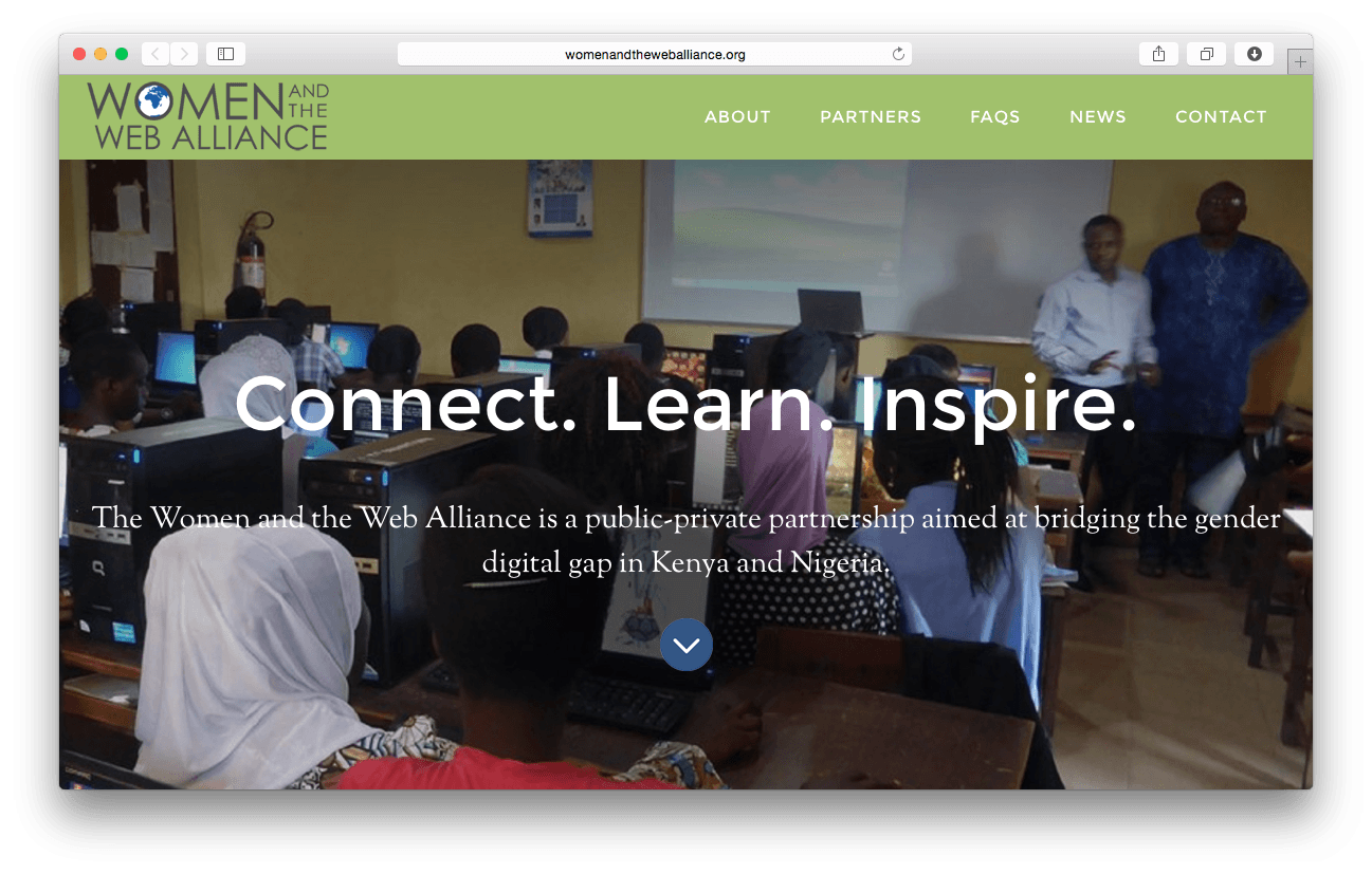 Women and the Web Alliance – это государственное и частное партнерство, нацеленное на преодоление гендерного разрыва в использовании Интернета и цифровых технологий для женщин Кении и Нигерии с помощью обучения, взаимодействия и вдохновения.