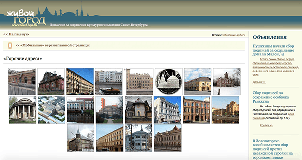 - Информирует население о реальной угрозе, которую представляют собой конкретные проекты для архитектуры Петербурга и благополучия самих жителей.