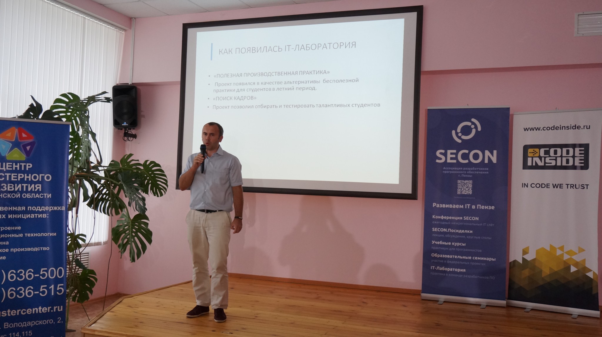 Кстати, благодаря созданию IT-лаборатории сообщество SECON стало выполнять и образовательную функцию. За летние каникулы пензенские студенты обучаются по таким специальностям, как «Программирование», «Маркетинг», «Коммуникационный менеджмент», «Дизайн». К концу обучения участники лаборатории разрабатывают программное обеспечение на заданную тему. В итоге они получают опыт общения с заказчиком и аудиторией, умеют не только создавать готовый продукт, но и презентовать его.