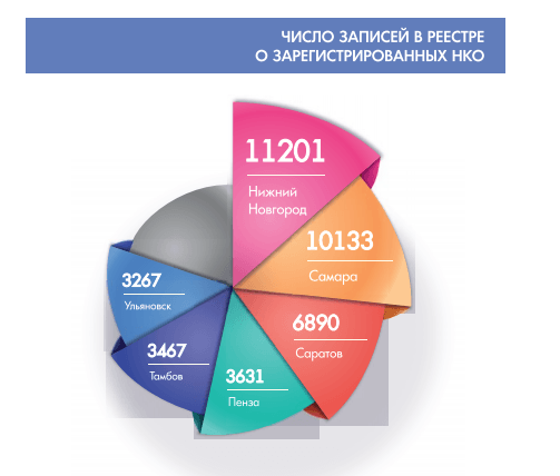 Согласно отчету в Пензенской области преобладают ветеранские, детские и инвалидные организации. Сейчас в регионе не более 20-30 активных городских сообществ, притом что пик активности сообществ приходится на 2012-2013 гг.