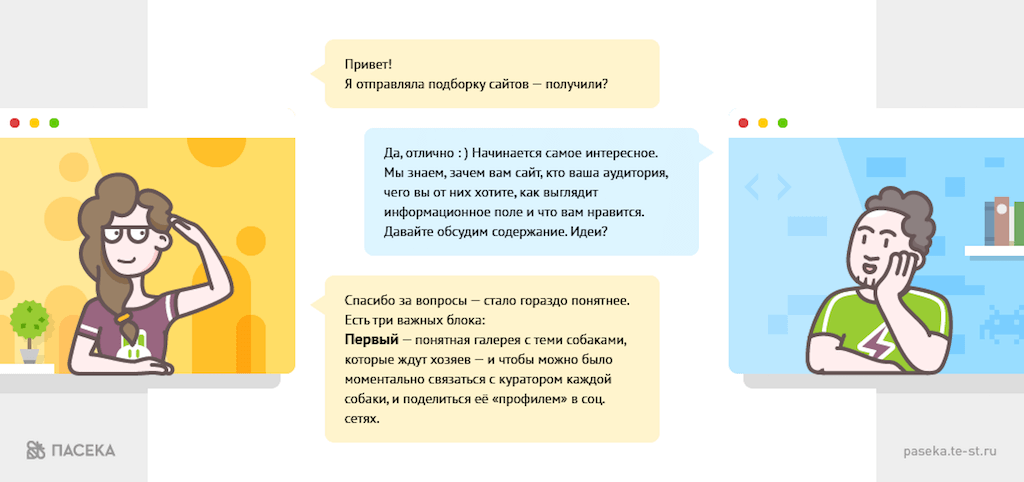 Программа Теплицы социальных технологий по аудиту и сертификации качественных агентств «Пасека» выпустила очередной комикс. Он показывает идеальный диалог между программистом-волонтером и фондом, которому нужен сайт. Самые важные вопросы и задания в четырех «skype-чатах».