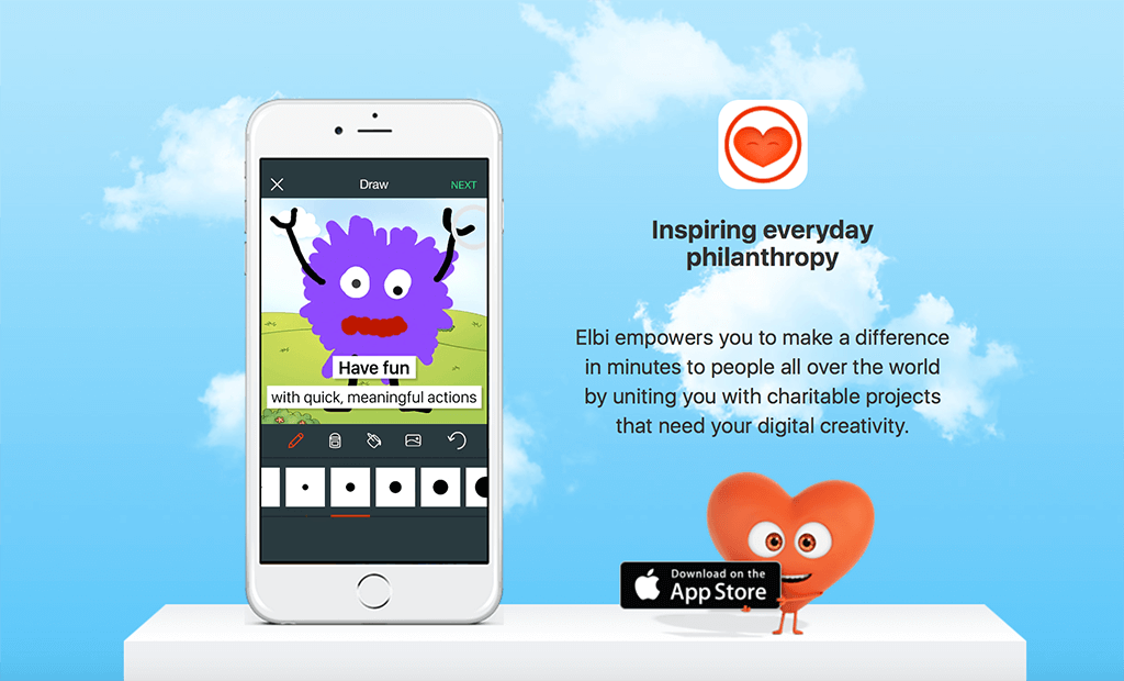 С помощью Elbi можно рисовать небольшие веселые изображения, чтобы поддержать детей и поднять их настроение, или пожертвовать $1 в выбранную организацию.