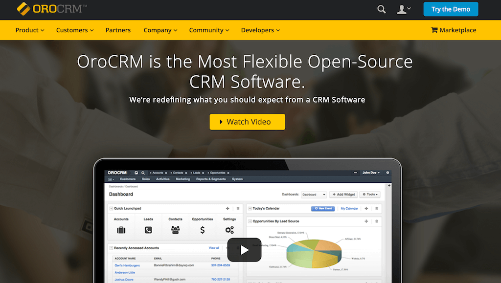 Есть два издания Oro CRM: Community и Enterprise. Оба издания удивительно похожи. Основное различие в серверной интеграции, доступной только в Enterprise: например, интеграция с Microsoft Outlook и Elasticsearch. В остальном функции обеих версий идентичны. Это сбор данных из всех ваших точек продаж, интеграция со сторонними сервисами рассылок, работа с контактами и лидами, отчетность и аналитика.