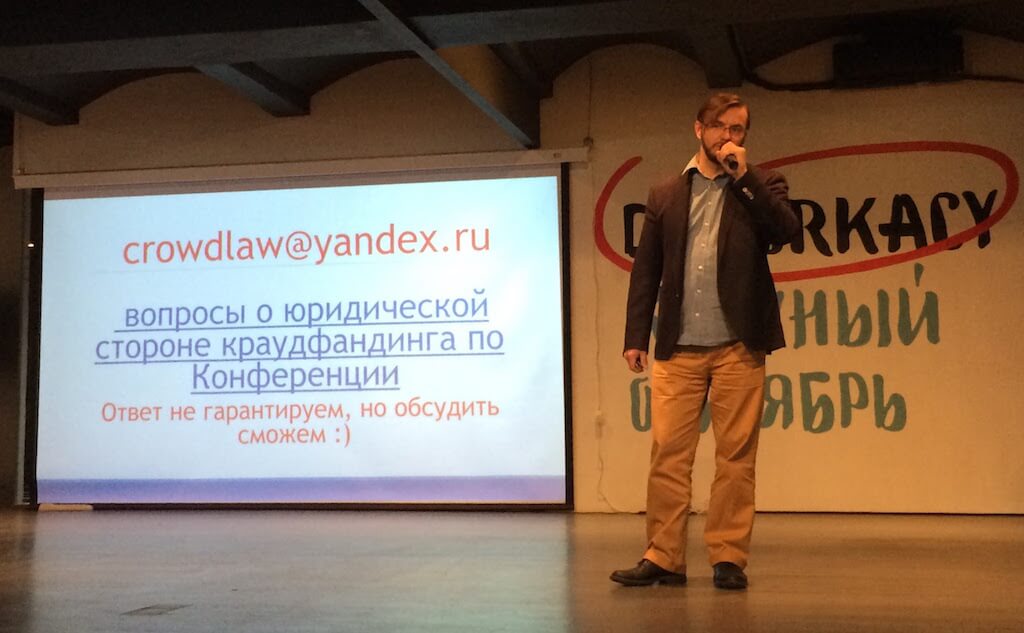 Алексей Чесноков, руководитель юридического отдела краудфандинговой платформы Planeta.ru, выступил на конференции «Краудфандинг для НКО» и рассказал о финансовых и юридических правилах проведения краудфандинговой кампании.