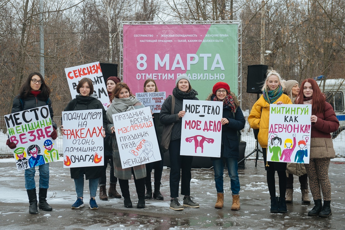 В Москве прошел митинг «8 Марта – отметим правильно!». Участницы обсуждали, какое положение занимают женщины в обществе и что они хотят изменить.