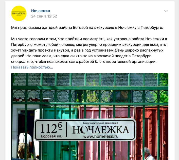 Но при этом в первые недели работы команда регулярно проверяла все упоминания с тегами и без, приходила в обсуждения, отвечала на вопросы или же опровергала домыслы и двусмысленные предположения. Было важно показать, что сотрудники видят комментарии, которые оставляют люди, следят за событиями и готовы со всей прозрачностью рассказывать о том, что и как делает «Ночлежка».