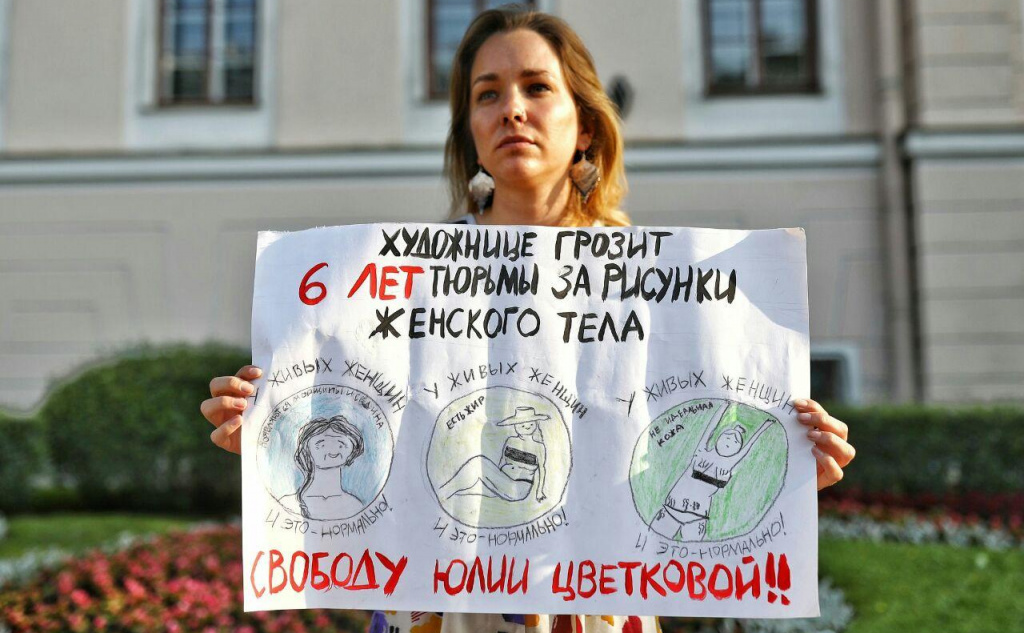 Около сотни медиасайтов, известных людей и блогеров выступили в поддержку художницы из Комсомольска-на-Амуре Юлии Цветковой. Акция под названием «медиастрайк», которую запустили российские фемактивистки, прошла 27 июня 2020 года. Во время нее на сайтах и личных страницах в соцсетях были опубликованы баннеры в поддержку Цветковой. Такой формат помог привлечь внимание к защите художнице.