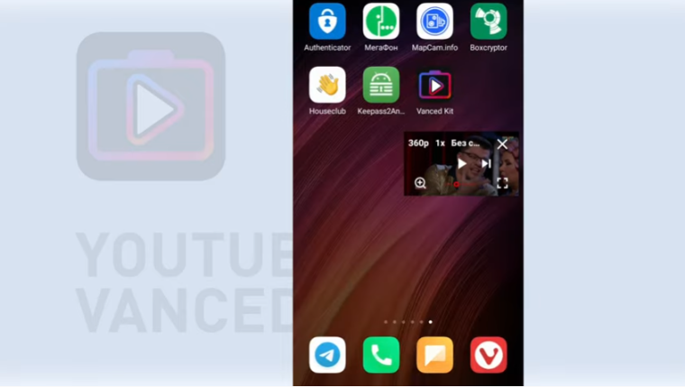Кроме того, в Vanced Kit есть ряд полезных дополнений. Свайп вниз сворачивает ролик, и его воспроизведение продолжается. Можно также запускать видео в отдельном всплывающем окне поверх всех других приложений. С помощью этой функции вы можете спокойно запустить видео и заниматься на смартфоне другими делами.