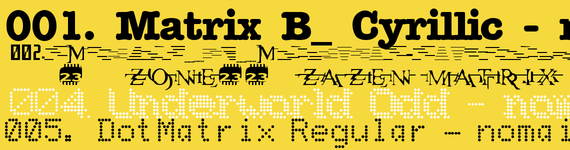 Шрифт относится к семейству Matrix (начертание Regular). Изготовителем шрифта является Matrix. Его размер – всего 10 Kb.