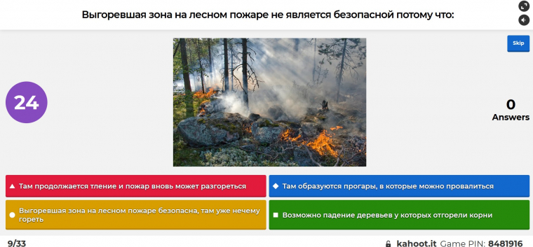 Другой формат обучающих лекций Greenpeace — занятия для детей, на которых ребятам дают основную информацию о лесных пожарах и их причинах. Привлечь и удержать внимание детей, когда они по другую сторону экрана, еще сложнее, чем взрослых. Но зато дети охотнее включаются в игры. Любой интерактив помогает легко вовлекать их в тему. И сотрудники Greenpeace придумали для детей викторины с более простыми, иногда шуточными вопросами.