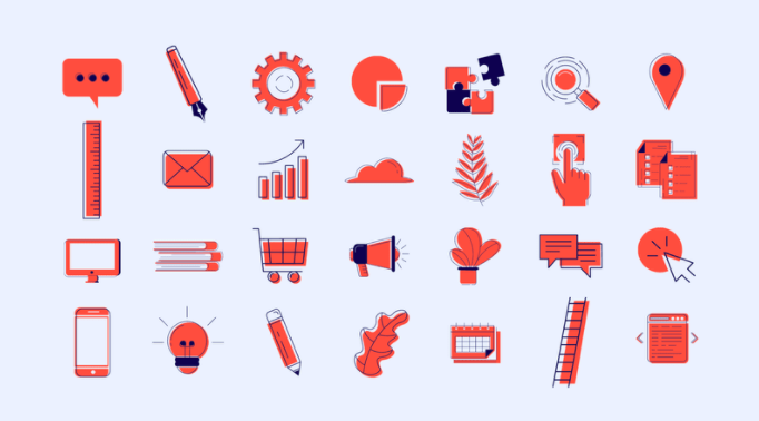 Лайн-арт — одно из трендовых решений в современном дизайне. Такие иконки смотрятся аккуратно и не отвлекают от сути. Их стоит располагать на светлом фоне и не делать слишком мелкими.