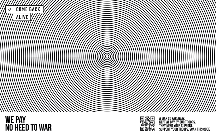 Социальная реклама фонда «Вернись живым» вышла в 2020 году и была посвящена тому же конфликту. Цель этой кампании — защита и поддержка людей на Донбассе. Авторы призывают не закрывать глаза на то, что, казалось бы, «невидимо», и не оставаться равнодушными к чужому горю.