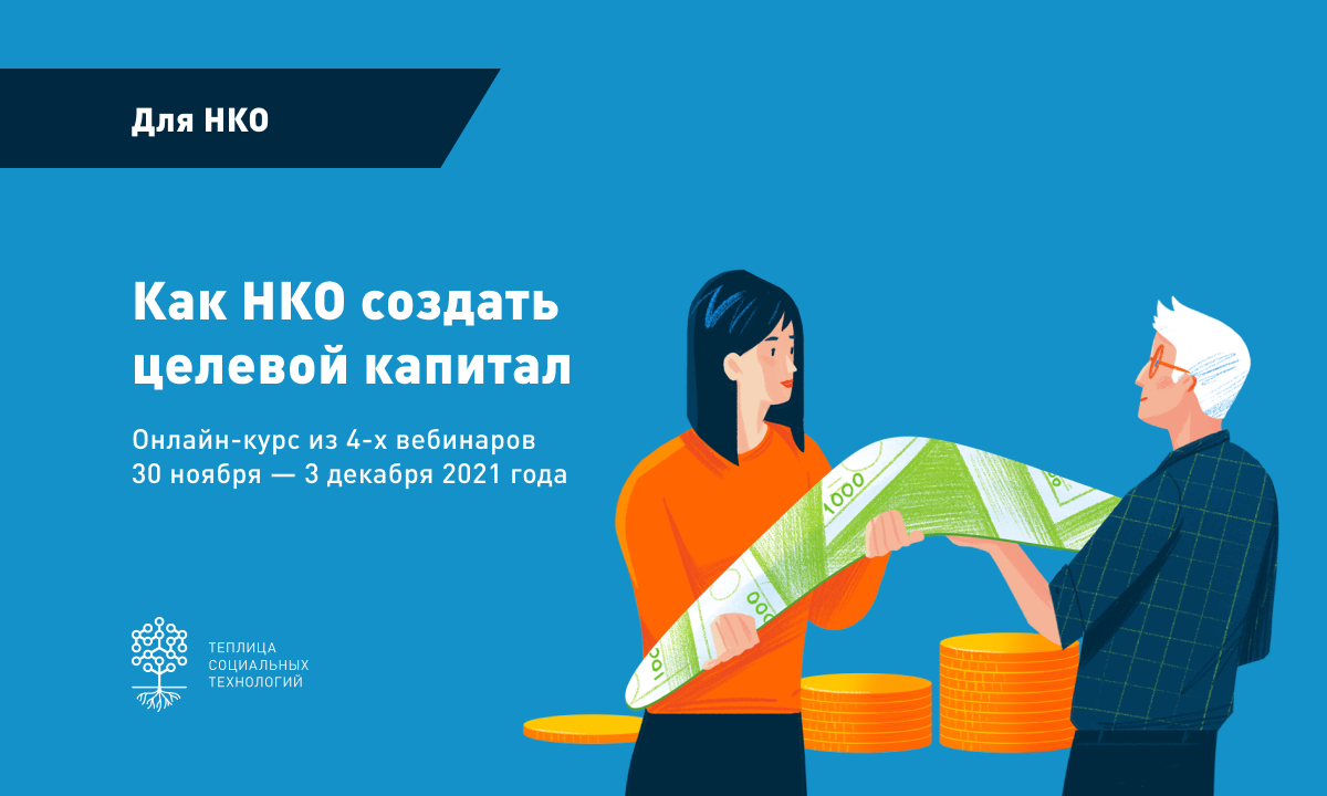 Команда Теплицы социальных технологий приглашает сотрудников некоммерческих организаций принять участие в онлайн-курсе «Как НКО создать целевой капитал». Онлайн-курс пройдет с 30 ноября по 3 декабря 2021 года.