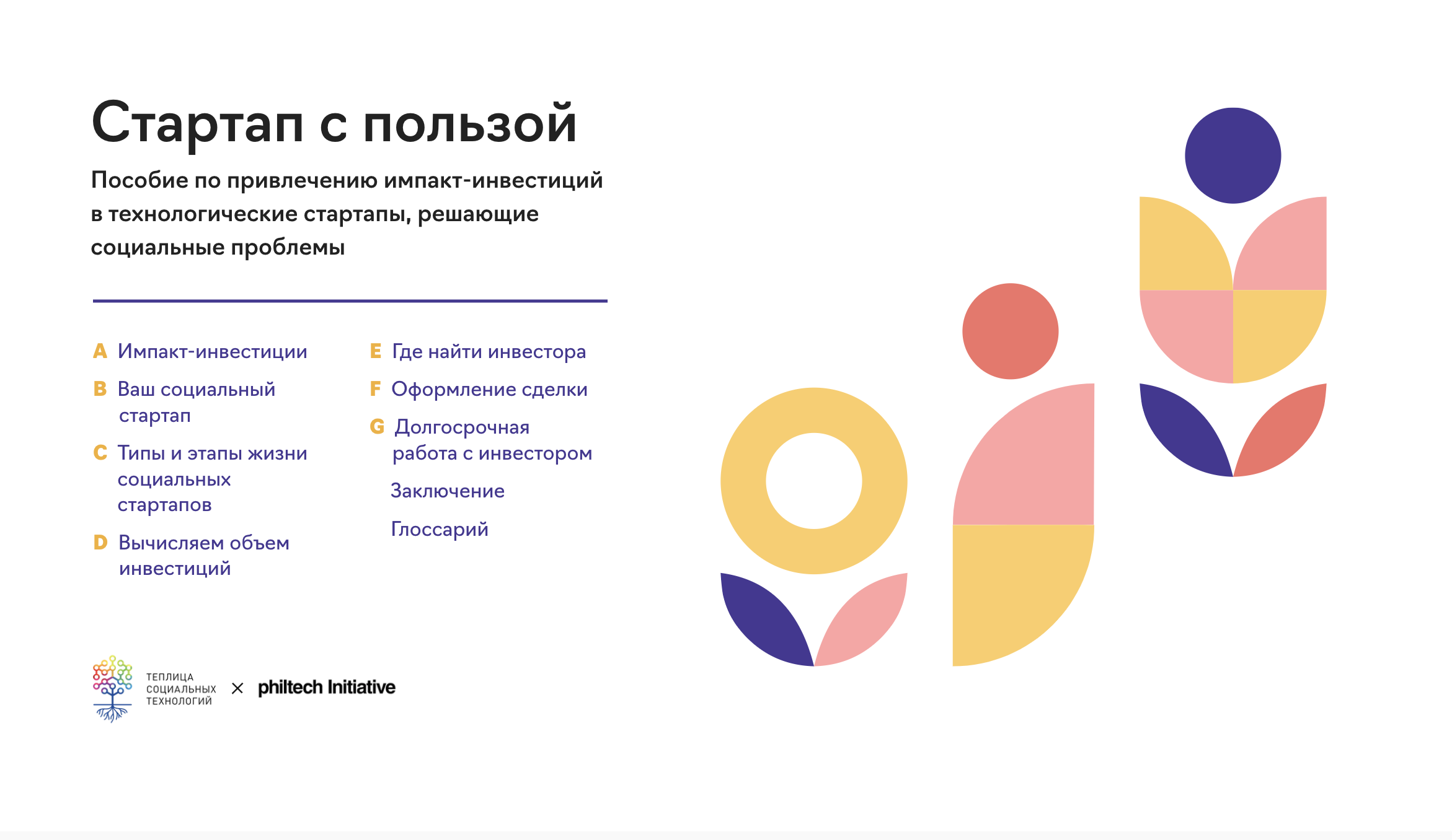 Пособие будет опубликовано онлайн и в формате электронной книги. Оно будет полезно авторам технологических стартапов, решающих социальные проблемы, командам некоммерческих организаций, социальных предпринимателей.