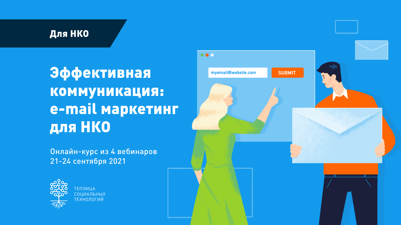 Команда Теплицы социальных технологий приглашает сотрудников некоммерческих организаций принять участие в онлайн-курсе «Эффективная коммуникация: email-маркетинг для НКО». Онлайн-курс пройдет с 21 по 24 сентября 2021 года.