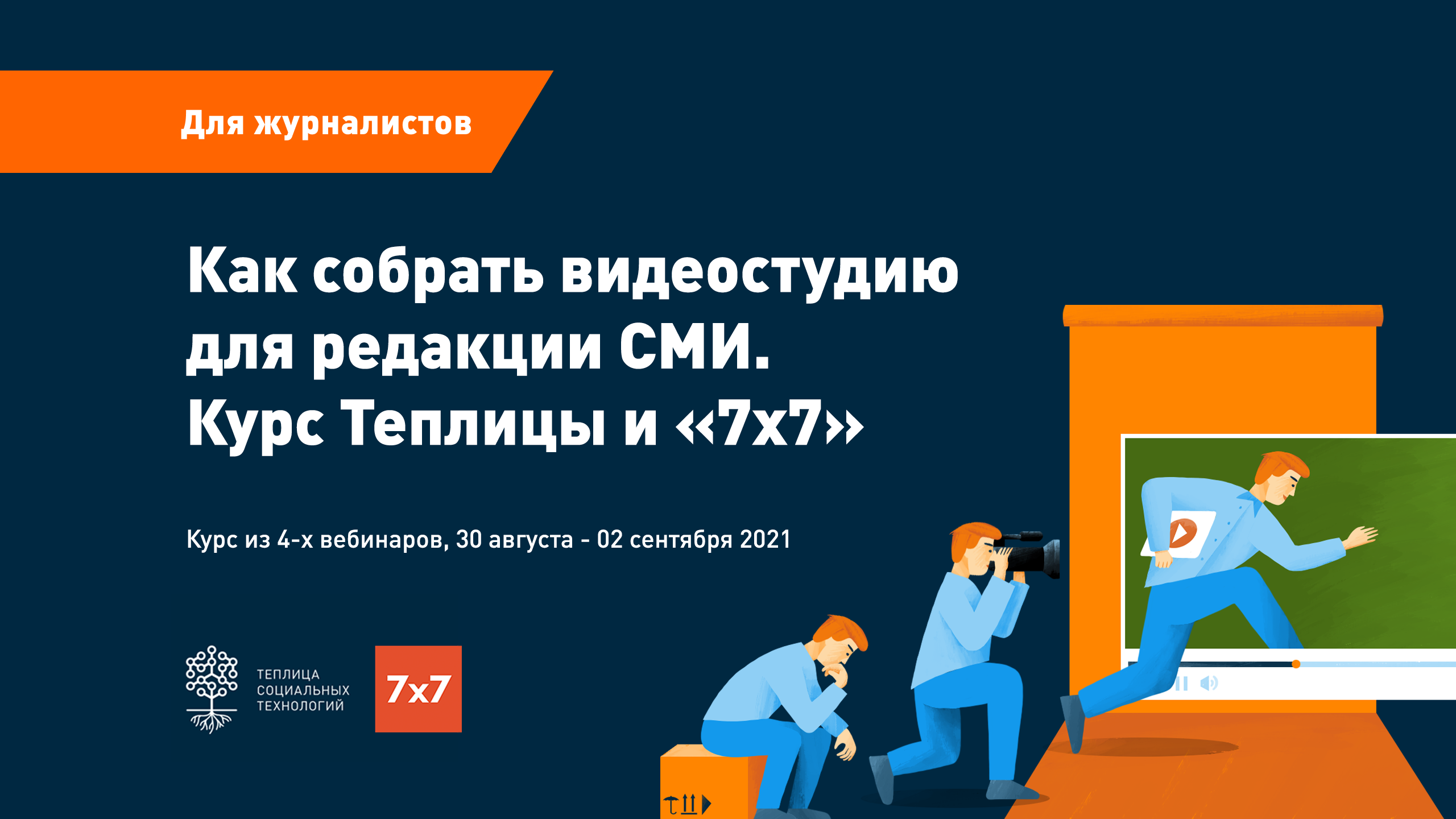 Команда Теплицы социальных технологий приглашает издателей СМИ, журналистов, редакторов и заинтересованных в сотрудничестве с медиа сотрудников НКО на мини-курс «Как собрать видеостудию для редакции СМИ». Он пройдет с 30 августа по 2 сентября 2021 года.
