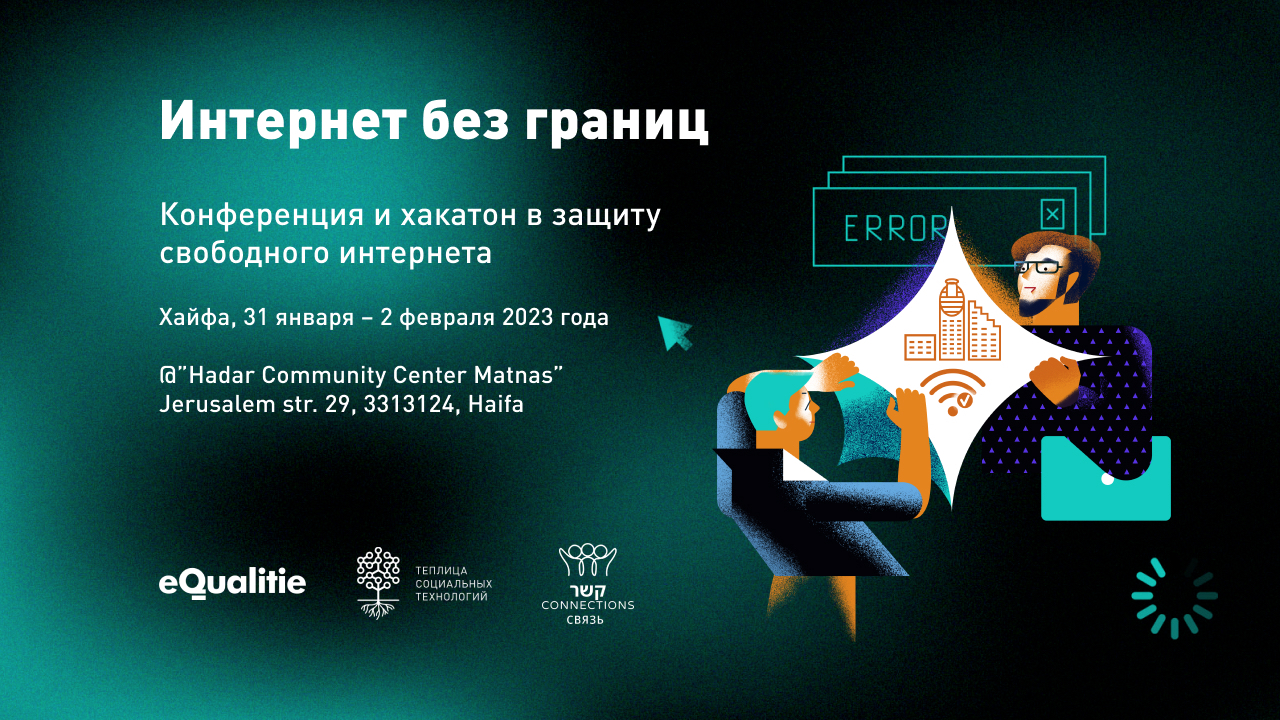 С 31 января по 2 февраля 2023 года в Хайфе команда «Интернета без границ» проведет конференцию и хакатон в поддержку свободного интернета. Мы приглашаем представителей и представительниц IT-сообществ, гражданских активистов*ок, исследователей, чтобы вместе обсудить проблемы интернет-цензуры и найти IT-решения против блокировок и изоляции. Участники включатся в международное движение против цензуры и помогут запустить инструменты для продвижения VPN, анализа шатдаунов, обхода блокировок. Призовой фонд хакатона — 5000$.