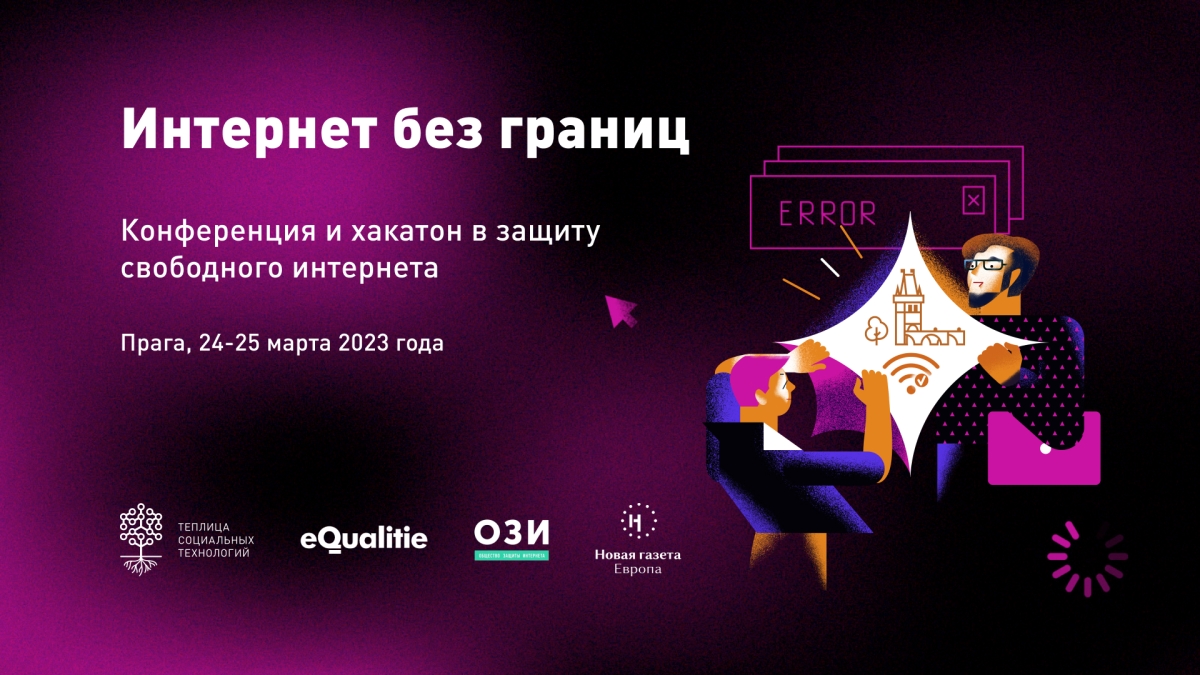 С 24 по 25 марта 2023 года в Праге команда «Интернета без границ» проведет конференцию и хакатон в поддержку свободного интернета. Мы приглашаем представителей и представительниц IT-сообществ, гражданских активистов*ок, исследователей, чтобы вместе обсудить проблемы интернет-цензуры и найти IT-решения против блокировок и изоляции.