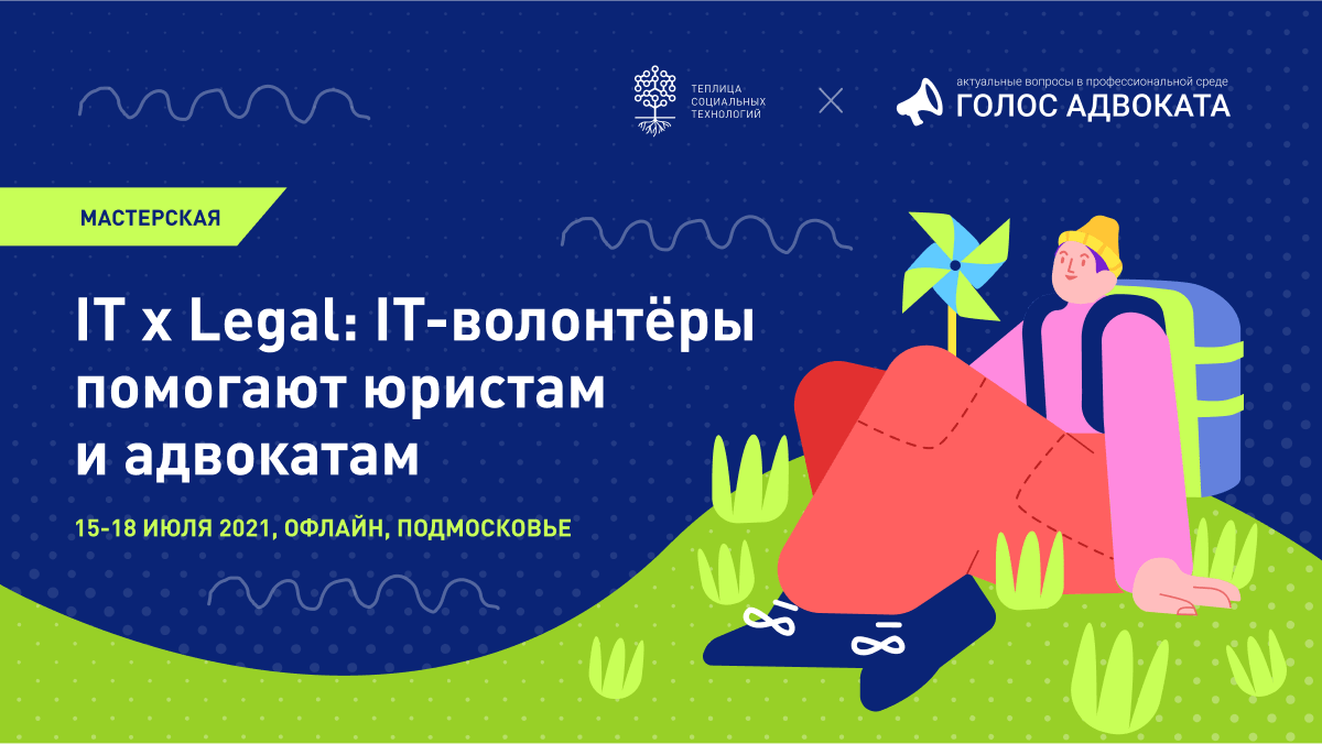 Команды Теплицы социальных технологий и проекта «Голос адвоката» приглашают представителей юридической профессии принять участие в мастерской «IT x Legal: IT-волонтеры помогают юристам и адвокатам». Она пройдет офлайн 15-18 июля 2021 года в Подмосковье.