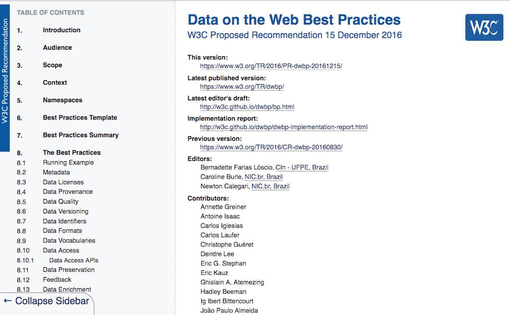 Организация W3С опубликовала Data on the Web Best Practices – рекомендации по публикации и использованию данных в Сети. Документ содержит лучшие практики как для тех, кто создает данные, так и для пользователей, которые эти данные используют. Рекомендации описывают механизмы представления информации в виде открытых данных в машиночитаемом формате.