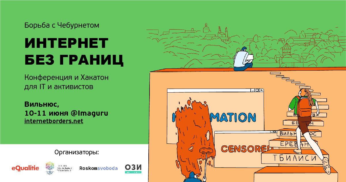 10 и 11 июня 2022 года в Вильнюсе команда «Интернет без границ» при поддержке Теплицы проведет конференцию и хакатон в поддержку свободного интернета. Мы приглашаем представителей различных IT-сообществ Вильнюса и Литвы вместе обсудить проблемы интернет-цензуры и найти IT-решения.
