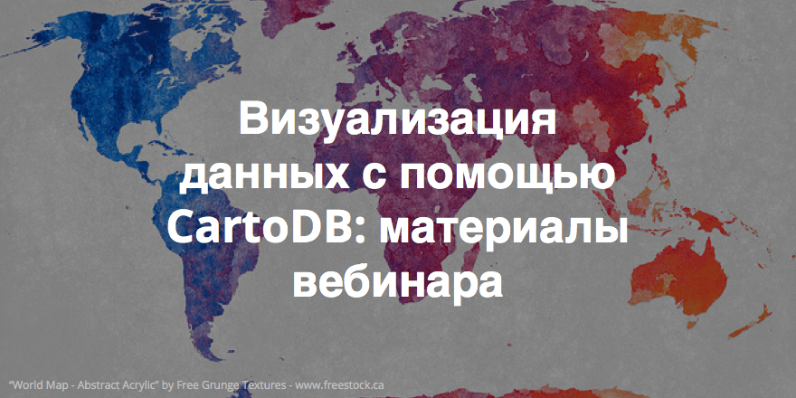 18 февраля прошел вебинар «Визуализация данных на карте с помощью CartoDB», цель которого – рассказать и показать возможности онлайн-сервиса CartoDB для создания пользовательских динамических карт, отображающих нужные вам данные на карте.