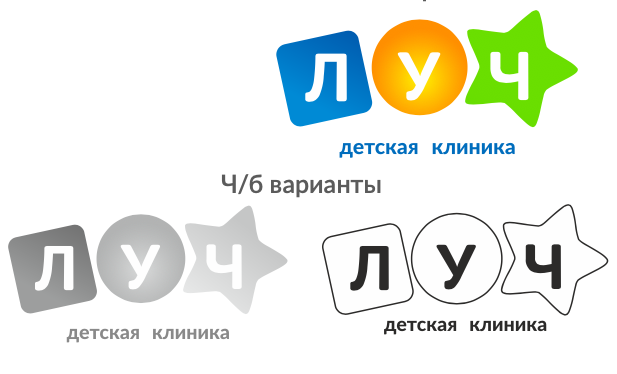 По словам дизайнера, было несколько вариантов расположения форм шарика, кубика и звездочки как примеров развивающих игрушек. Например, вариант со стилизованной погремушкой не подошел заказчику, и от него решили отказаться. В итоге утвердили вариант, показанный на картинке ниже.