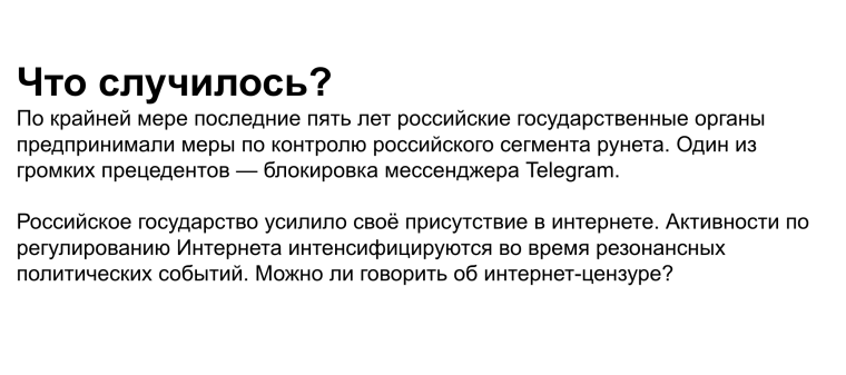 Команда работала над исследованием с целью изучить, как российские власти взяли под контроль Рунет. И граничивают свободу его использования с помощью блокировок запрещенного контента, замедления неугодных сайтов, создания реестров «экстремистской» информации.