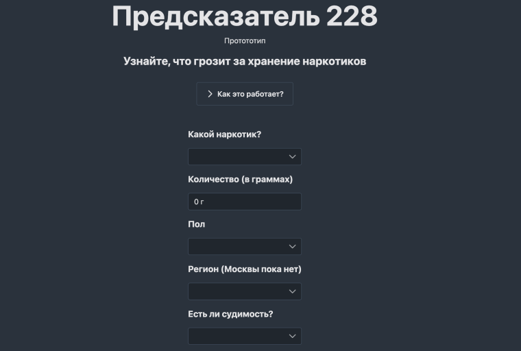 Сейчас сервис имеет 46 тысяч приговоров из 86 регионов России. Команда спарсила более 300 тысяч текстов приговоров судов первой инстанции за последние семь лет по делам о хранении наркотиков и изучила важные обстоятельства дела и сущности, которые влияют на наказания.