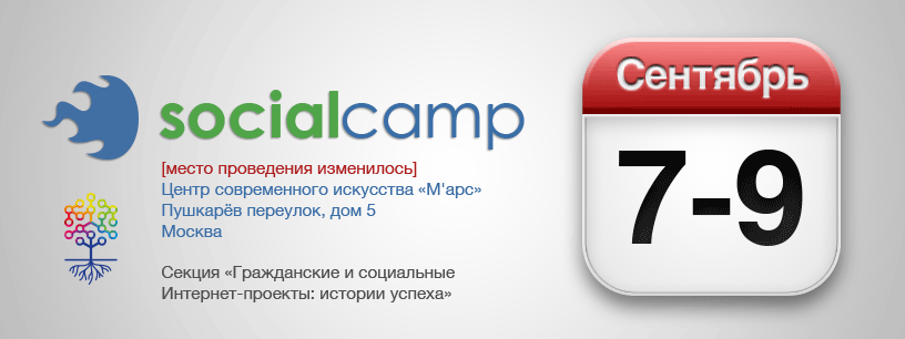 Теплица социальных технологий стала одним из соорганизаторов главной «неконференции» в России SocialCamp Russia. В течение 3 дней активисты рассказывали о проектах, направленных на повышение информированности, улучшение взаимопонимания между людьми, развитие благотворительности и многие другие вещи. Теплица организовала секцию «Гражданские и социальные Интернет-проекты: истории успеха».