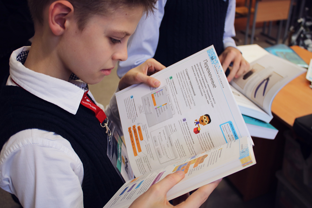 «Особенно круто было провести игротеку, на которую пришли и учителя разных предметов, и родители учеников. Они все вместе пытались пройти сложные уровни в игре-лабиринте, помочь мышке собрать сыр, соревновались в гонках, отвечали на каверзные вопросы в викторинах. Это был такой момент, когда стали общаться ребята из 5-х и 9-х классов, ученики помладше обращались за помощью к более опытным программистам: «А как сделать так, чтобы он касался этого ключа и получал за это баллы?». Ученики, которые никак не связаны с программированием, решили помогать в создании материалов: они занимались переводом готовых карточек инструкций с сайта Scratch, которые затем были распечатаны». Арина Нуриахметова