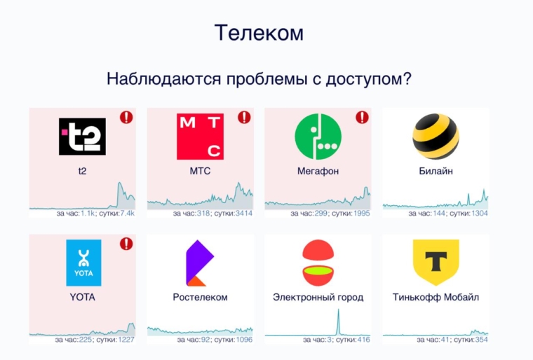 — В России зафиксирован масштабный сбой в работе мобильных операторов, сообщают СМИ. По данным сервиса Downdetector, начиная с 11 утра по столичному времени у абонентов «Билайна», «Мегафона», МТС, Tele2 и Yota в ряде крупных городов наблюдаются проблемы с доступом к интернету или полное отсутствие сотовой сети.